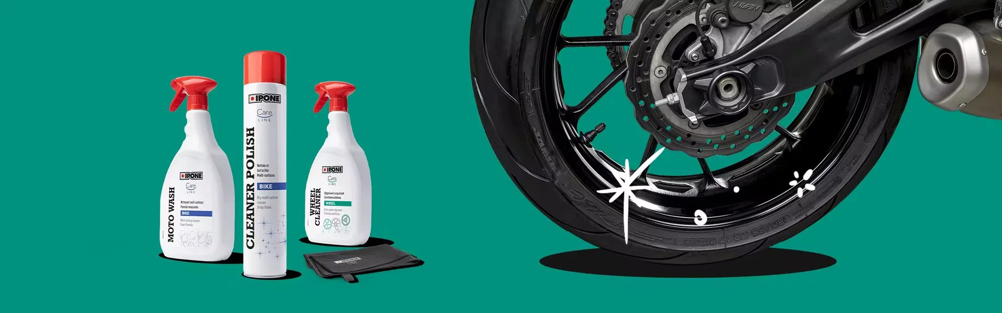Da biste odmastili i očistili felne vašeg motocikla, poprskajte Wheel Cleaner. Ovo sredstvo odmašćuje i uklanja ostatke masti, ulja ili blata, bez oštećenja boje i sjaja.
